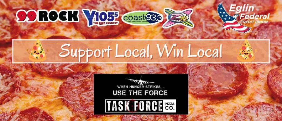 It's time to LIVE LOCAL and WIN BIG with Eglin Federal Credit Union and Cumulus Media! We're hooking you up with prizes to your favorite Emerald Coast hotspots-and maybe even a few hidden gems! In November, it's a Task Force Pizza Takeover! You could win pizza for a year... good at Task Force Pizza in Fort Walton B…